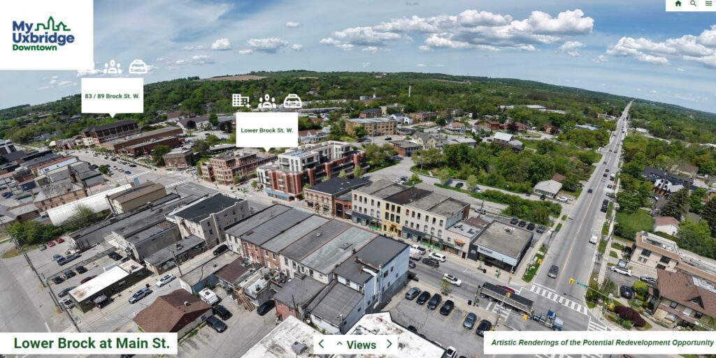 We partnered with the Township of Uxbridge, Invest Durham, and the Province of Ontario to bring the Downtown Revitalization Project to life through a detailed 3D animation and interactive virtual tour. The goal was to help the community and stakeholders better visualize how planned improvements could reshape the heart of Uxbridge.